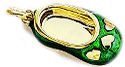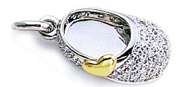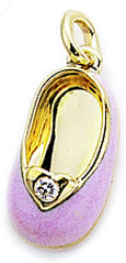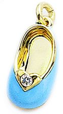 pink or baby blue, this enamel shoe has a beautiful diamond, rimmed
